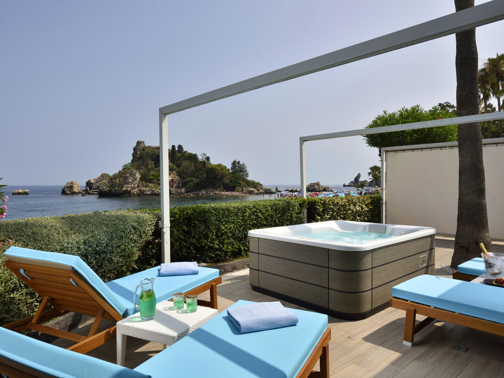 Ampie ed eleganti, le suite de La Plage Resort garantiscono un totale relax e una vista spettacolare su Isola Bella, godibile dal terrazzo privato affacciato sul mare di Taormina.